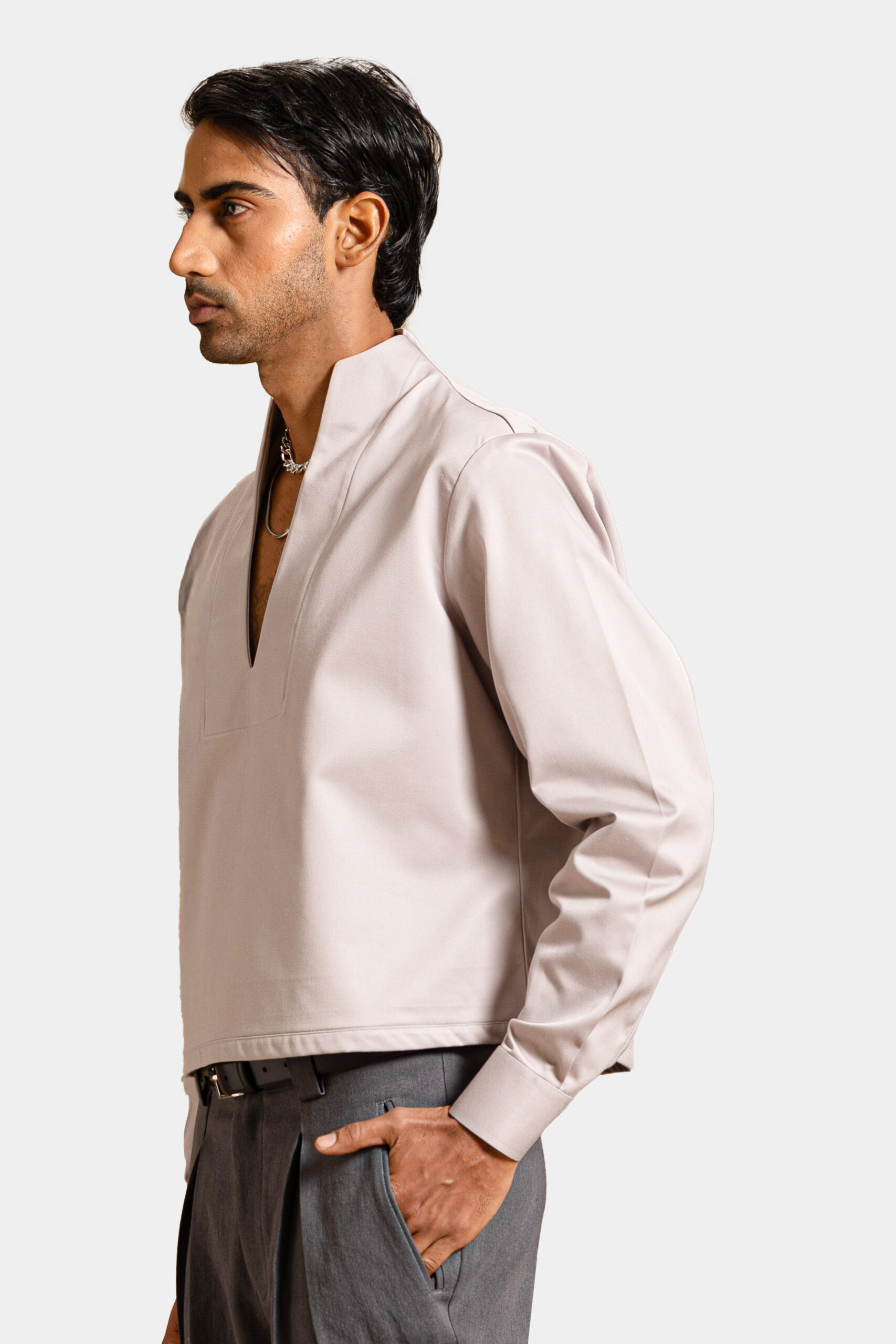 The cream shacket — designed with a minimal silhouette for a timeless, modern edge.